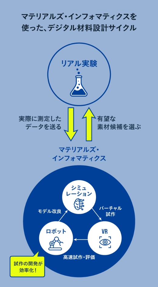总而⾔之,由材料信息学和因其所制造的所有数据将作为创造未来的基底,支援东丽的下⼀代研究。