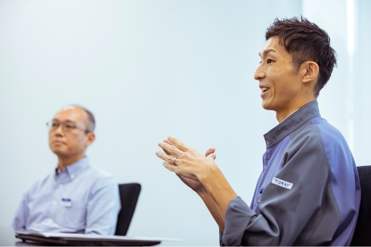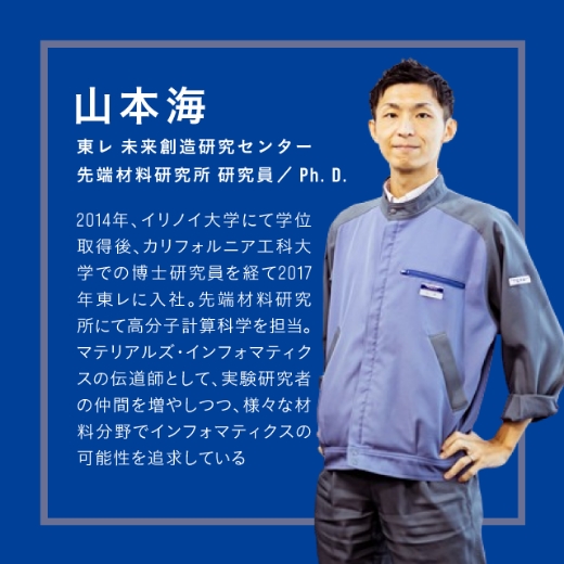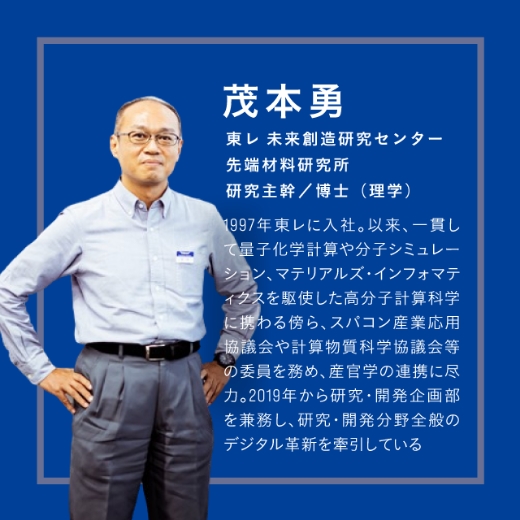 因为聚合物材料进行成型加工,要混合各种添加剂,所以每次性质都会发生变化。专门从事东丽高分子计算科学的茂本勇先生和⼭本海先生如是说。
